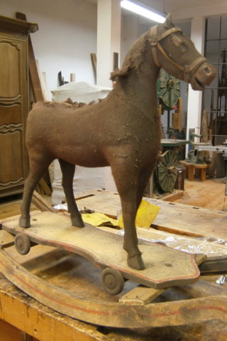 Schaukelpferd ca.1930, Zustand vor – und nach der Restaurierung