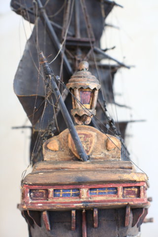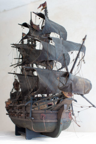Maßnahmen: Reinigung von Staubablagerungen, Ergänzung von Seilösen und Seilen, Neuverleimung eines gebrochenen Mastes und einer Kanone, Aufstellen der zerknitterten Segel