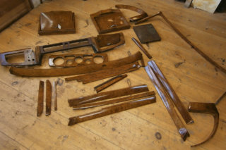 Nicht alltäglich ist die Nachfrage nach der Aufarbeitung von – im wahrsten Sinne – „mobiler“ Ausstattung, wie man sie in älteren Edelkarossen findet. Interessant ist die Problematik der industriellen Hochglanzlackierung mit modernen Lacksystemen auf äußerst dünnem Wurzelholzfurnier.