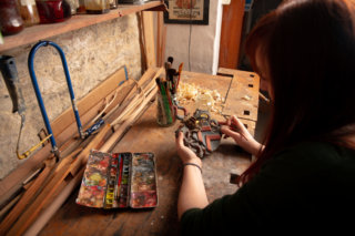 Mein Atelier befindet sich in Klein Kreutz in direkter Nachbarschaft zur Tischlerei Vogel. Ausgestattet mit historischen und modernen Werkzeugen und Materialien sowie einem reichen Fundus an Furnieren, übergeben Sie Ihre Objekte hier in kompetente Hände.